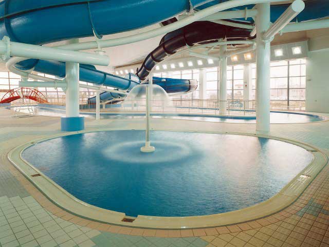 50m公認プール、25mプールや流水プールがある。ウォータースライダーは身長120cm以上から楽しめる。水泳帽子は必須。生後6か月未満は利用不可だが、生後6か月以上で水遊び用おむつと水泳帽子、水着(規定あり)を着用すれば幼児用プールが利用できる。