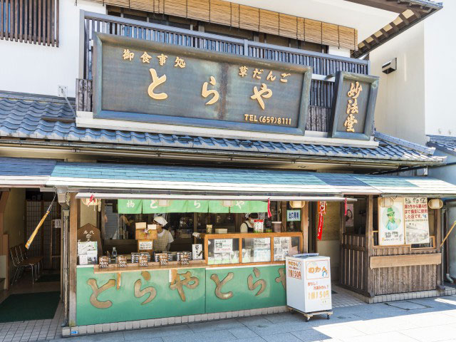 創業が明治初期という老舗。名物の草だんごは、コシヒカリ、生のヨモギ、北海道産の小豆と、材料にこだわって作られる。コシが強く、ヨモギの風味が生きた自慢の一品だ。