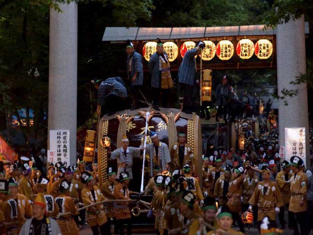 約1900年前の創建と伝えられる神社。境内には拝殿や宝物館がある。毎年5月5日に行われる「くらやみ祭り」では8基の御輿と6張の大太鼓が市内を練り歩く。