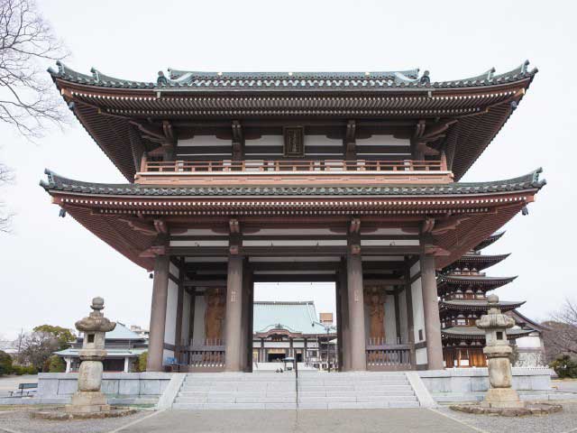 日本で唯一、いずれの宗派にも属さない寺院。明治37(1904)年、タイ国(当時のシャム国)から贈られたお釈迦様の真骨を納めるために建造された。毎月21日には弘法縁日が開催され、日泰寺までの参道沿いに多くの露店が並ぶ。