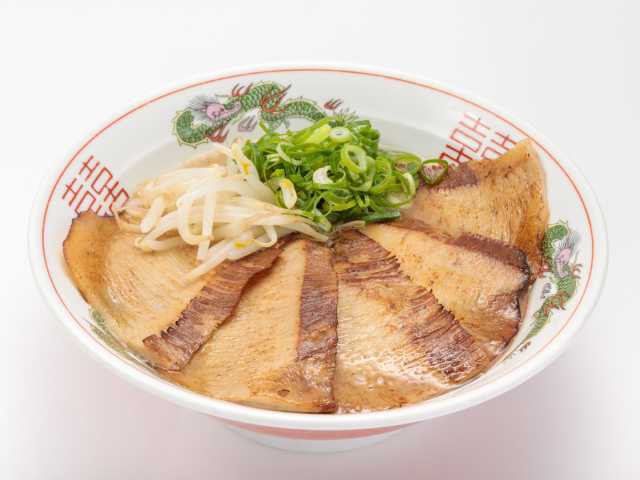 連日客足が絶えない人気店で、有名人のサイン色紙がずらりと並ぶ。希少な豚のホホ肉のチャーシューがのる「炙りとろ肉チャーシュー麺」は、この店のみの限定品。チャーシューはバーナーであぶっていて香ばしい。