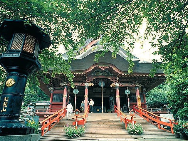 浅草、江ノ島と並び関東の三弁天と称される。全国でも珍しい多宝塔式鐘楼や龍宮造りの楼門が見どころで、多くの参拝客が集まる。平成18(2006)年千葉県指定重要文化財に指定された。