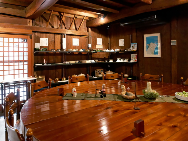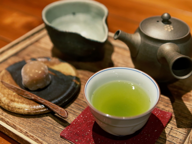 明治24(1891)年築の納屋を改装したギャラリー&喫茶室。玉露や煎茶、くき茶、芽茶、ほうじ茶などいろいろな種類の日本茶が味わえる。お茶と和菓子または洋菓子が付くセットが人気。