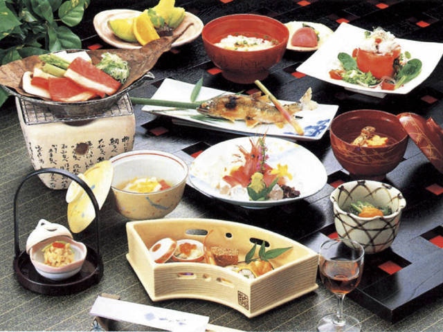 長良川畔、金華山麓に建つホテル。長良川の恵みを受けた鮎を中心に、川魚料理がたっぷり味わえる。展望浴場から豊かな自然を眺めながら、赤褐色の湯につかりくつろぎたい。