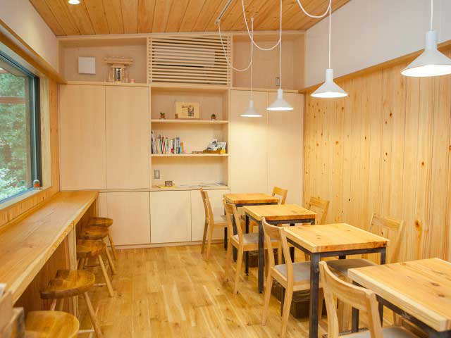 すぐそばの牧場でジャージー牛を飼育し、そのミルクを使ったソフトクリームやプリンが人気。休日には遠方客が行列を作るほどの評判だ。木のぬくもりのある店内やテラス席で食べられるほか、テイクアウトもできる。