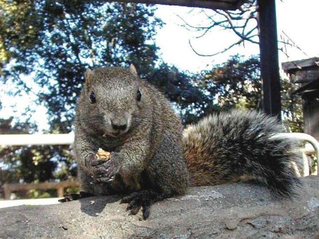 人なつこいリスが放し飼いにされている。手袋をしてエサを差し出すとリスたちが寄ってきて、手の上に乗ったり、肩や背中を駆け上がったりする。幼児等除き、手袋とエサを無料提供。