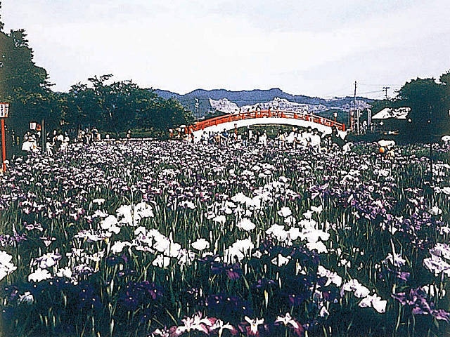 ハナショウブの名所。園内には、江戸系、肥後系、伊勢系のハナショウブ約300種、3万7000株が咲きそろう。賀茂神社近くで花しょうぶまつりも開催。期間中はライトアップされる。