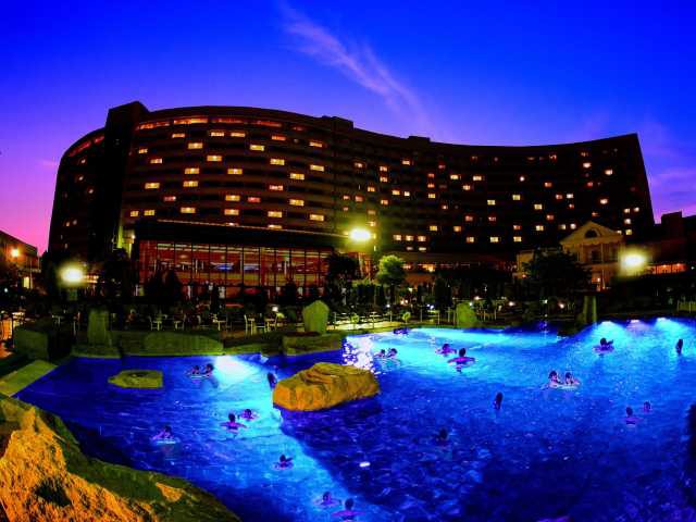 円形の外観が特徴的。宿泊者専用のスパを併設する