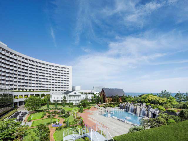 JR京葉線舞浜駅からディズニーリゾートラインで5分、ベイサイド・ステーション下車、ディズニーリゾートクルーザー(無料シャトルバス)で4分