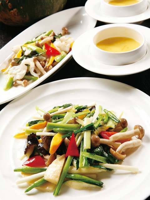 広東料理をベースに、野菜やハーブをふんだんに使った料理を提供。火を通していながら、まるで生野菜を食べているようなシャキシャキとした食感が楽しめるメニューなど、こだわりが感じられる。