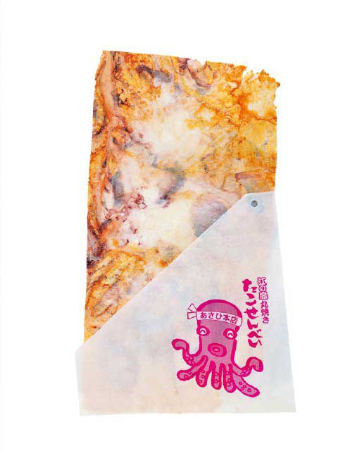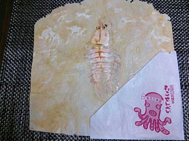 イイダコをまるごと数匹焼いて作るたこ丸焼きたこせんべいの店。200度に熱したプレスで圧縮するため、たこ本来のおいしさが味わえる。ピリッとした味わいが特徴のクラゲせんべいも人気。