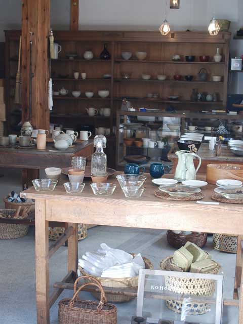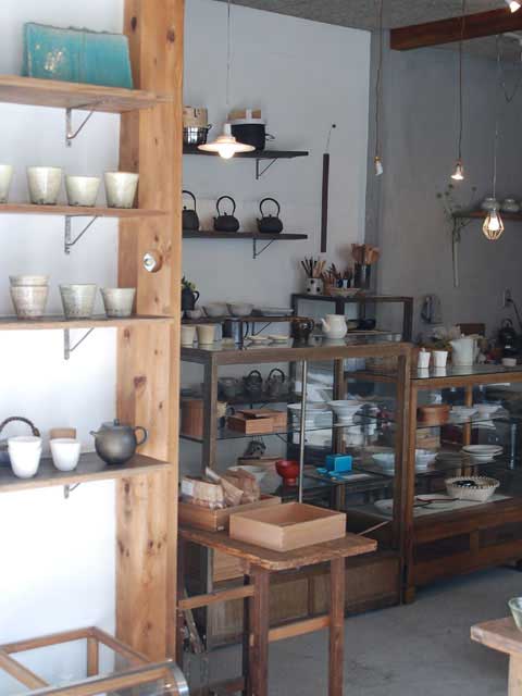 土間のような雰囲気の店内は、美しい器や雑貨が並ぶ心地よい空間。現代作家ものから民芸品まで、使うほどに味わい深くなる雑貨に出会える。