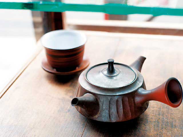 大正時代から90年以上続く、老舗茶店。錫製の茶壺が並んだ風情ある店内は一見の価値あり。晴れた日にはお店の軒先で、アンティークの皿や小物などの販売も行なっている。