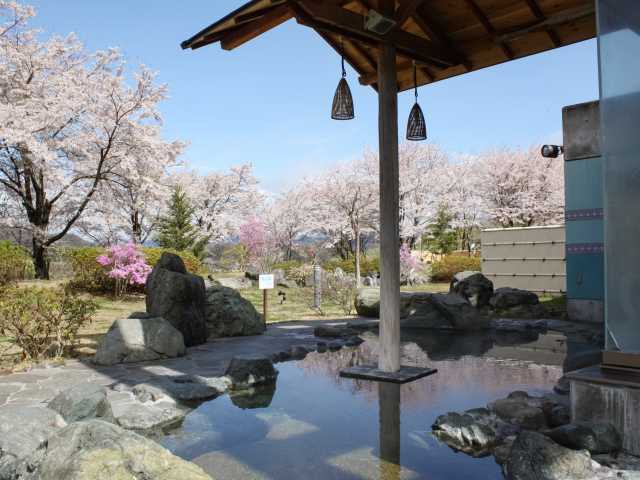 小高い丘にあり、目隠しフェンスがないので開放感と周辺の山なみが見られ、四季折々の自然を満喫しながらのどかに入浴できる。特に露天の桜が満開になると、お花見風呂を満喫できる。夜にはライトアップを行い、夜桜を楽しめる。地下1800mから湧き上がる温泉は成分総計が非常に多く、美肌効果の高い高アルカリ性で神経痛や冷え性などにも効能がある。メディアには、「美肌の湯」「若返りの湯」と紹介された。