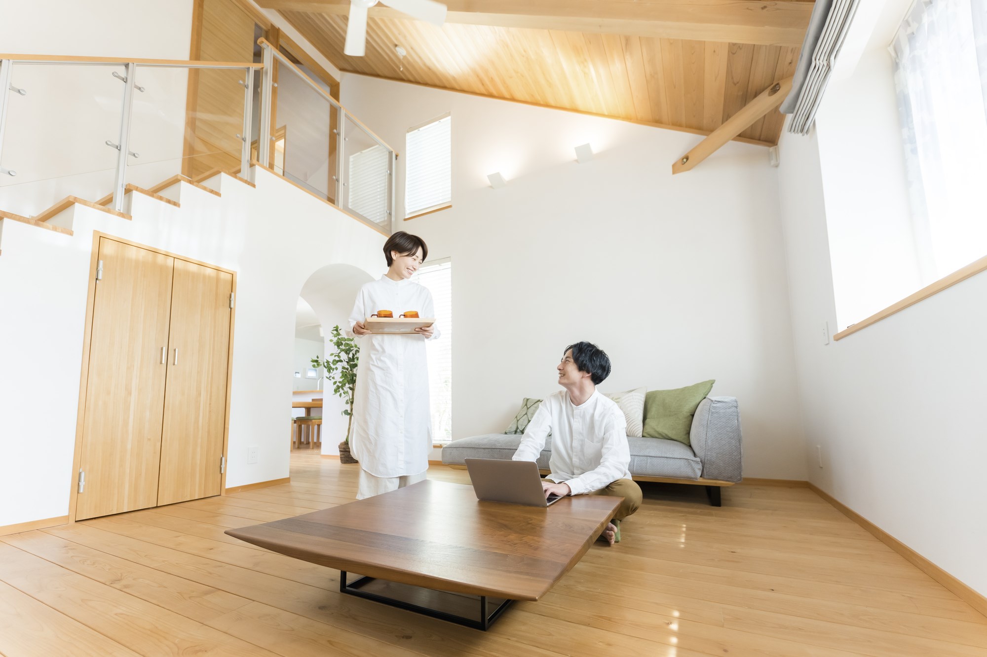 リビングやダイニングといった広い空間で採用されることが多く、高窓を設けて自然光を取り入れることで、明るく爽やかな印象を与えられます。また、天井の梁を見せたり、木材を使ったりすることで、デザイン性の高い空間を演出することも可能です。