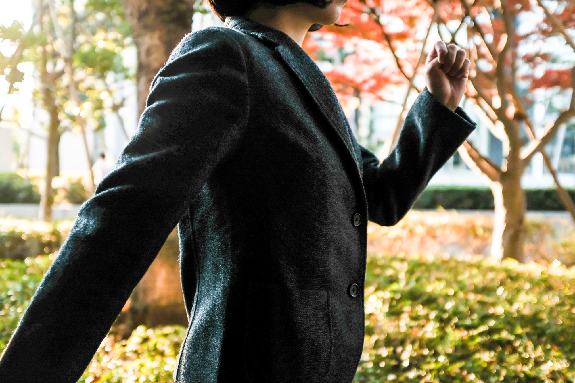 歩き出す前に、一度肩を持ち上げられるところまで上げてから、力を抜くように下げてみましょう。歩き出しで肩の力が抜けやすくなります。