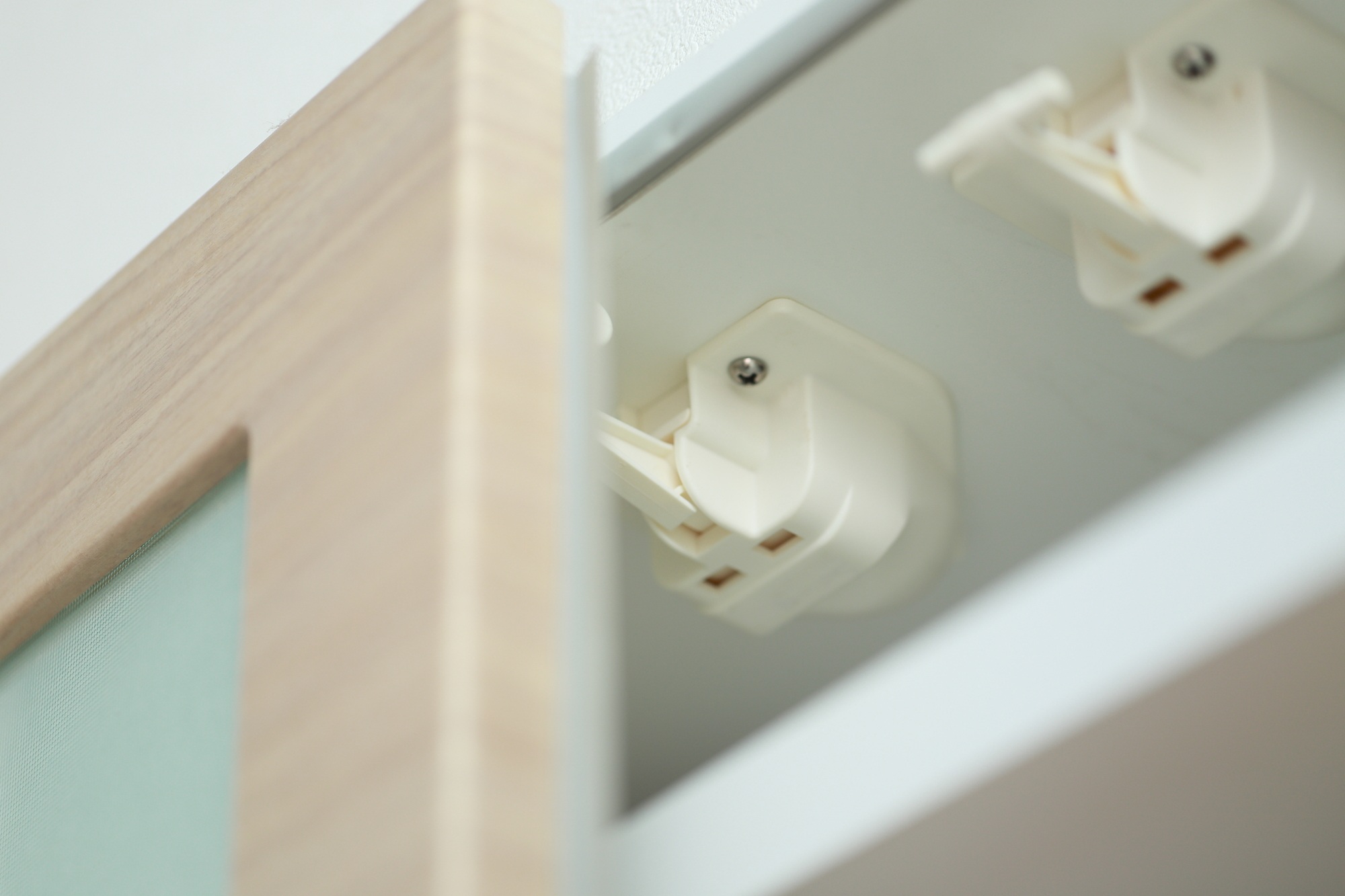 地震対策の中でも、まず取り入れやすいのが「耐震ラッチ」や扉の開きを防ぐグッズです。揺れによって扉が開き、食器が飛び出してしまうのを防ぐ役割があります。