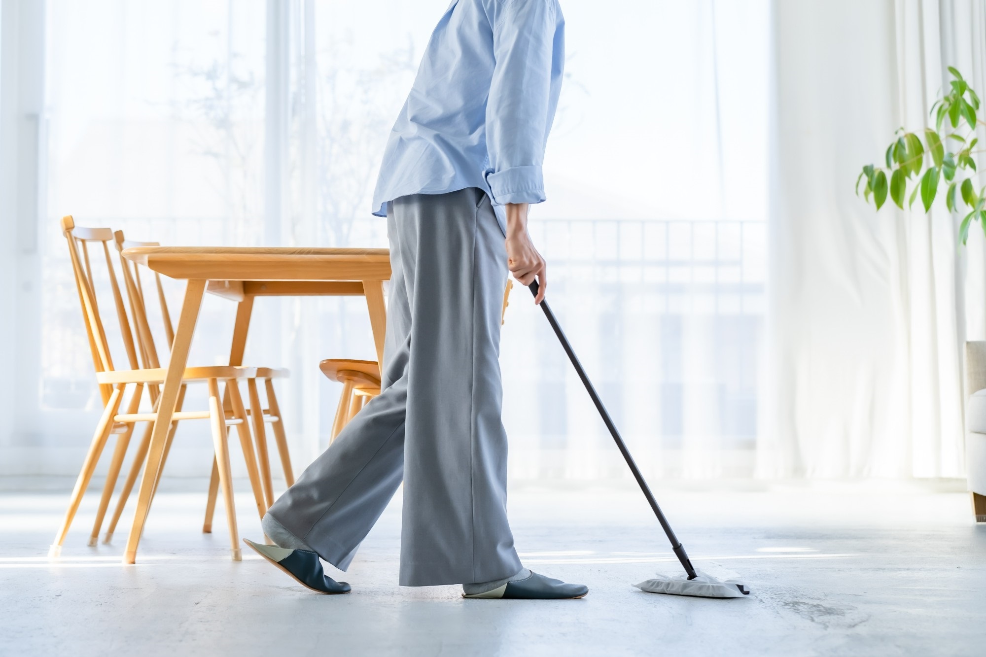 フローリングは、拭き掃除のなかでも、広い範囲の掃除が必要となる箇所です。毎日のフローリング掃除は乾拭き、テーブルの下など汚れの多い箇所や、念入りに掃除をしたいときは水拭きをするなど、使い分けてもよいでしょう。