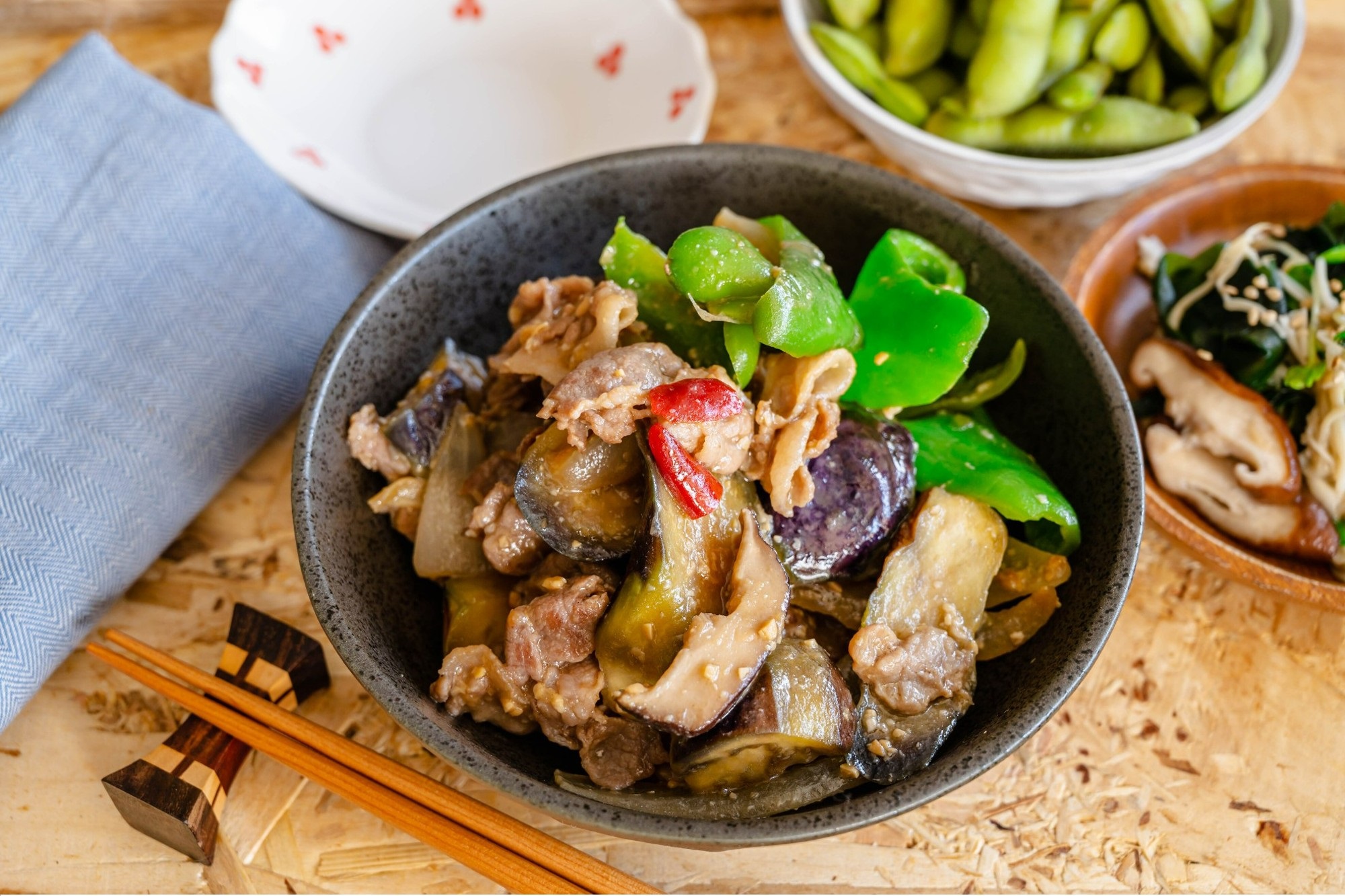 ⑤ナスがしんなりし、牛肉に火が入ったら火を止めて完成。