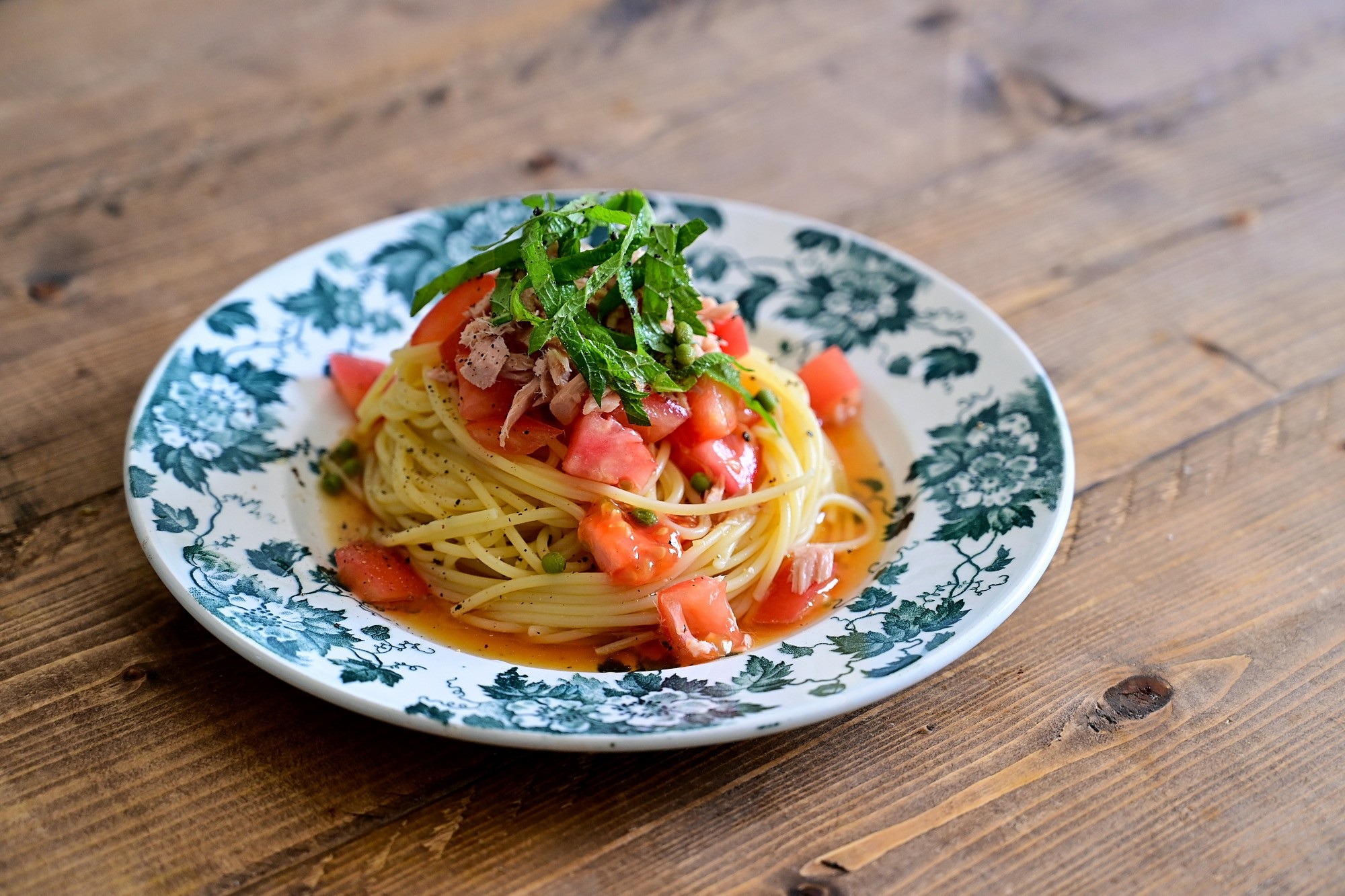 ①好きな太さのパスタを時間通りに茹で、冷水で締めて水気を切る。