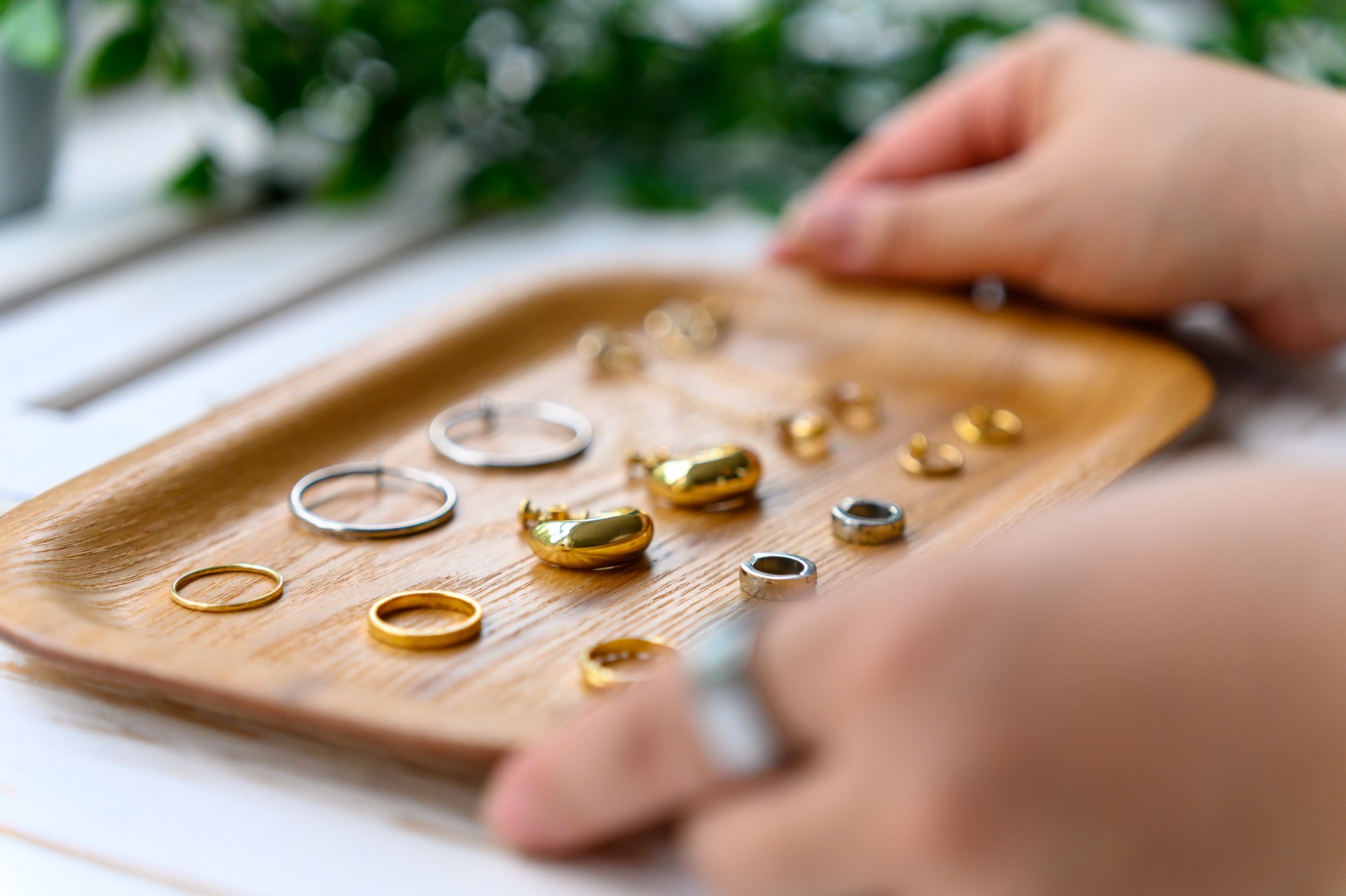 サイズが小さく、引き出しの中で見失いやすい指輪は、専用の「リングホルダー」や「リングトレー」が欠かせません。指輪は、手元を彩る象徴的なアイテムだからこそ、収納時もそのデザインが映える工夫をしましょう。