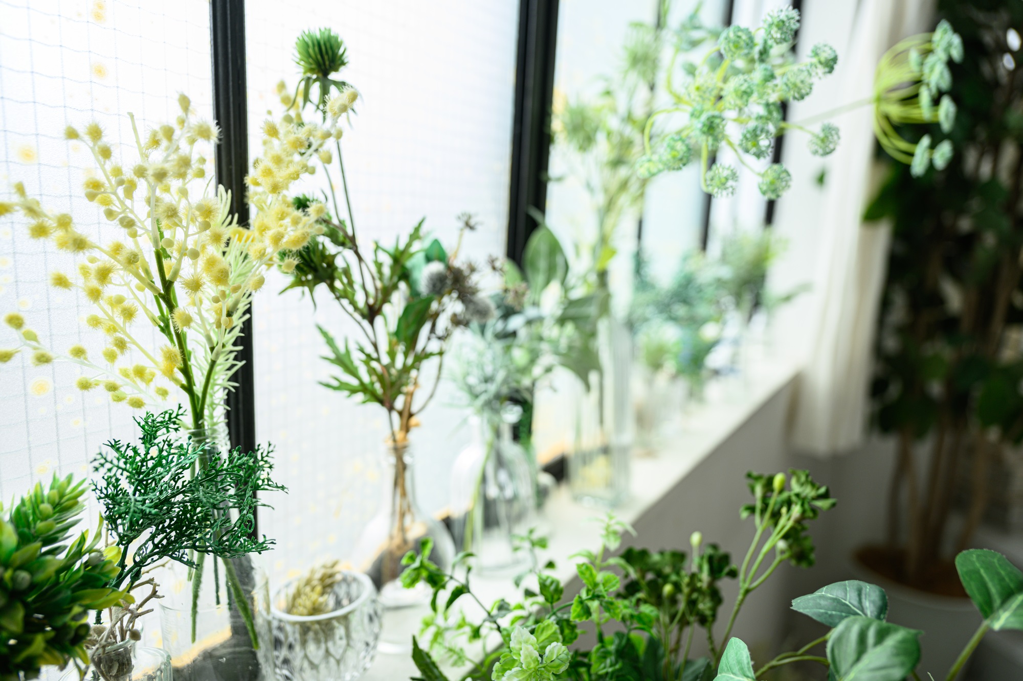 外からの視線をカットするために、窓の近くに植栽で目隠しをする方法があります。緑が視界に入ることで景観のよさを感じられるなど、自然な目隠しができるというメリットがあります。落下などの心配がないよう対策をすれば、窓辺に観葉植物を置くのもよいでしょう。