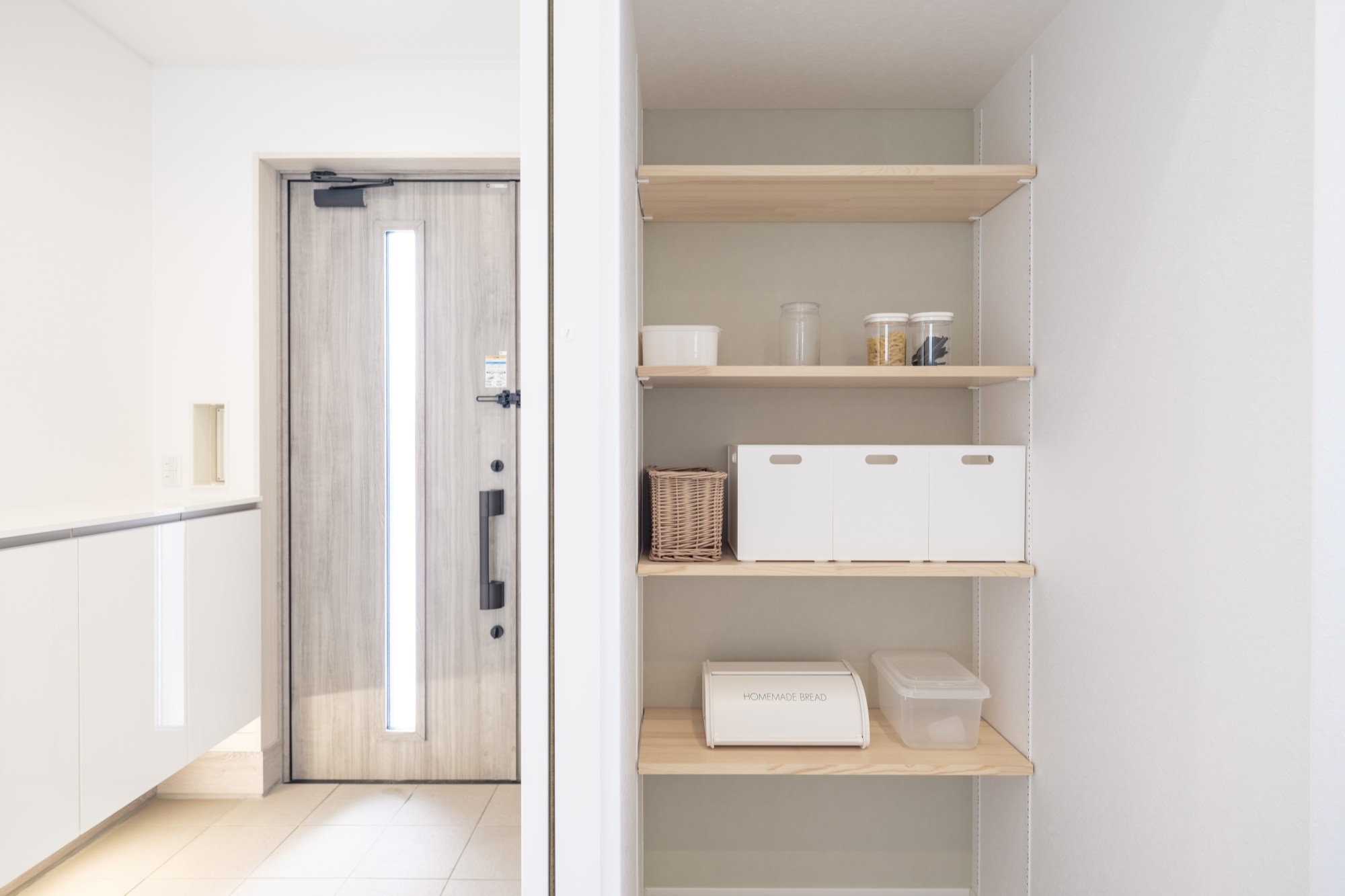 玄関は来客が最初に目にする場所であり、家全体の印象を左右する重要な空間です。物が散らかっていると雑然とした印象になってしまいますので、隠す収納を取り入れて、洗練された玄関を作りましょう。