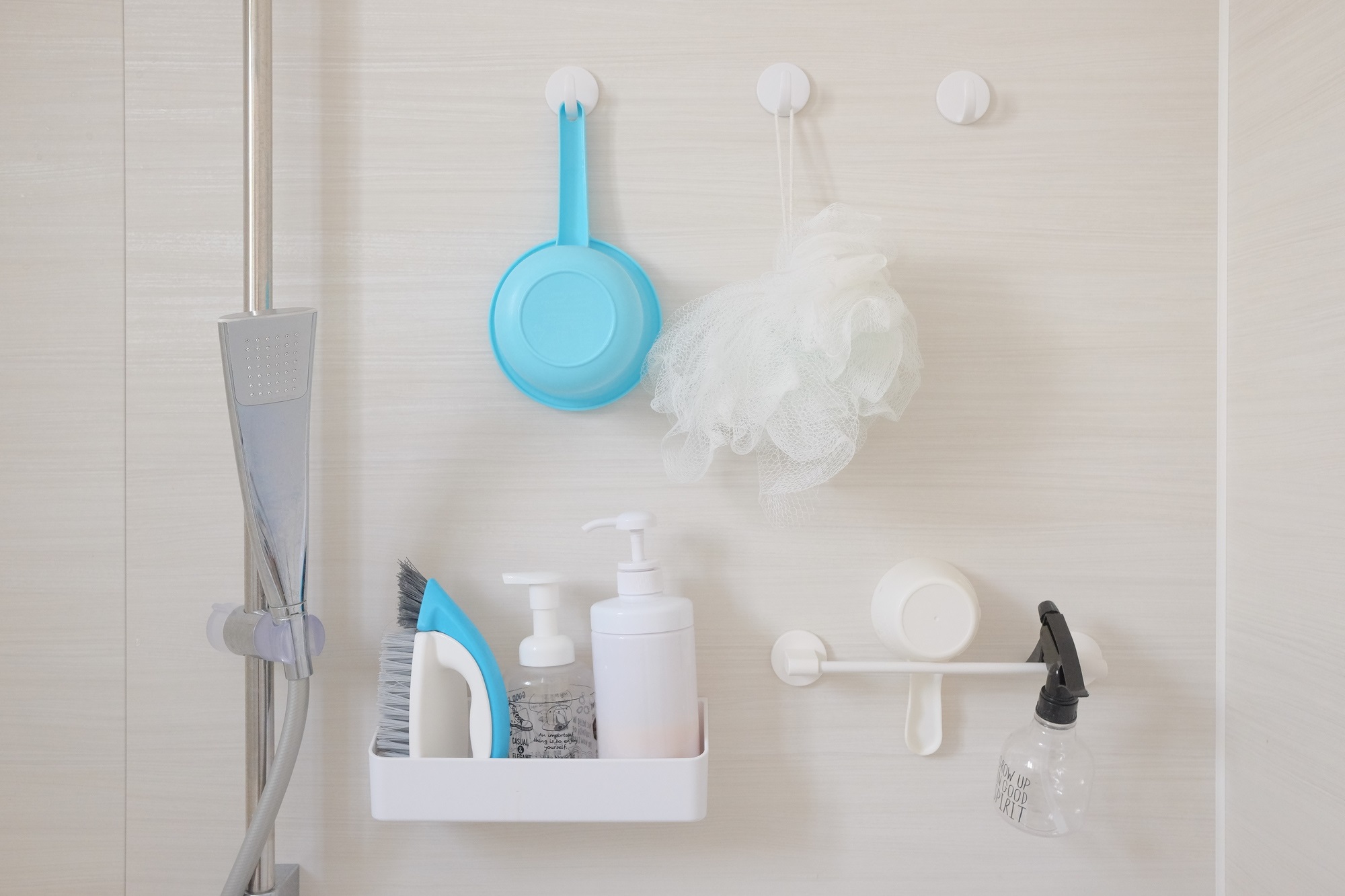 小物類はできるだけ吊り下げたり壁に設置したりして浮かせるか、水はけのよい場所に設置しましょう。最近では、磁石でお風呂場の壁にボトル類を貼り付けられる便利なグッズも販売されています。