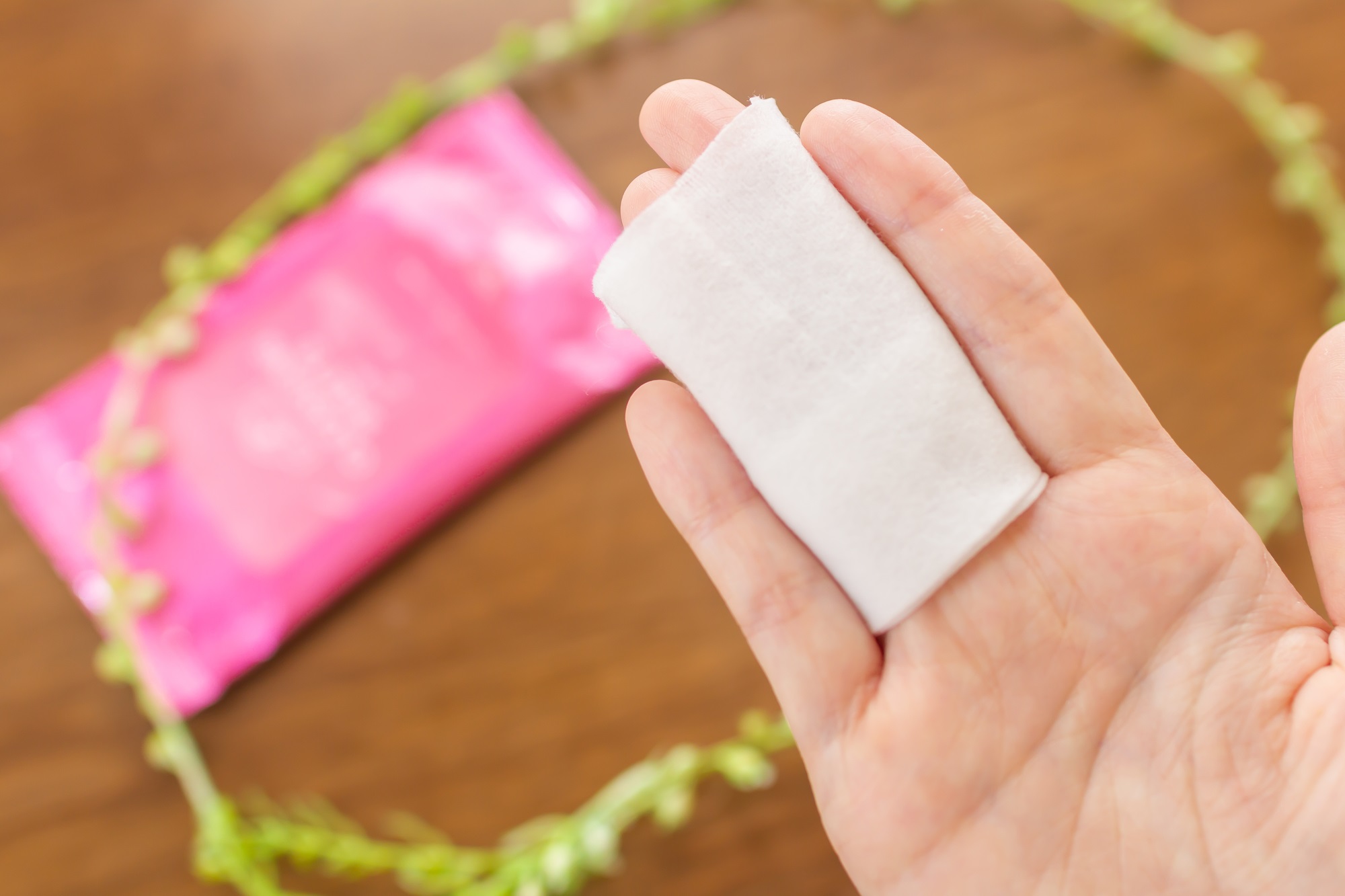 クレンジングシートでシミの部分を軽く叩きます。ハンドソープを使う場合には、ソープをティッシュにつけて同様に行いましょう。