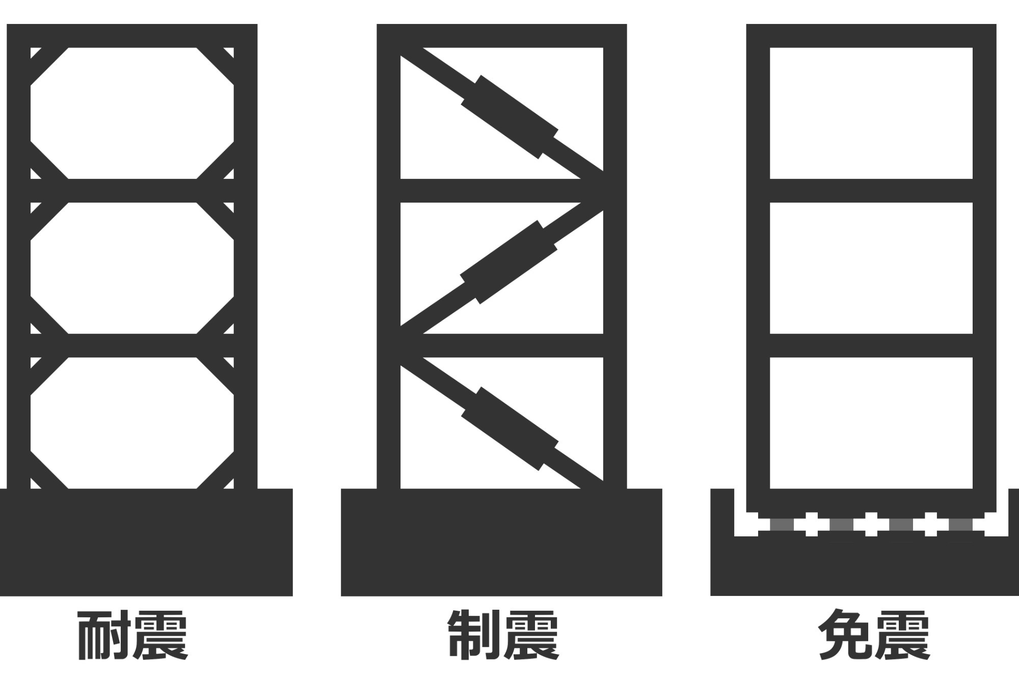 地震に強い住まいといっても、その仕組みは1つではありません。建物の強さを高める考え方には「耐震」「制震」「免震」という3つの種類があります。