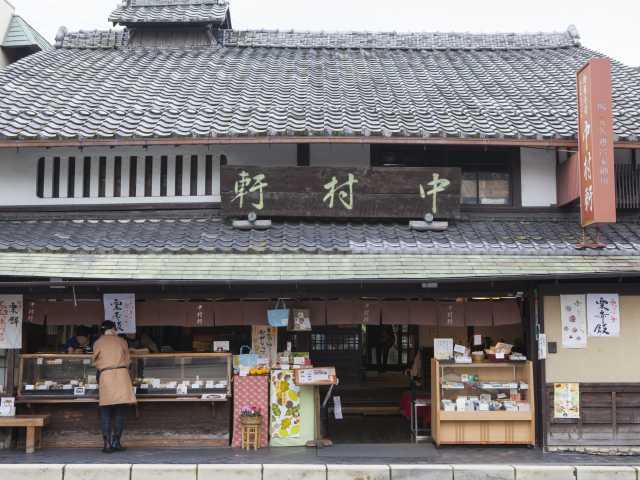 桂大橋のほとりにある、明治16(1883)年創業の老舗。粒餡をやわらかい餅で包んだ名物の麦代餅(むぎてもち)は素朴な味わい。茶房では冬はぜんざい、夏はかき氷なども楽しめる。