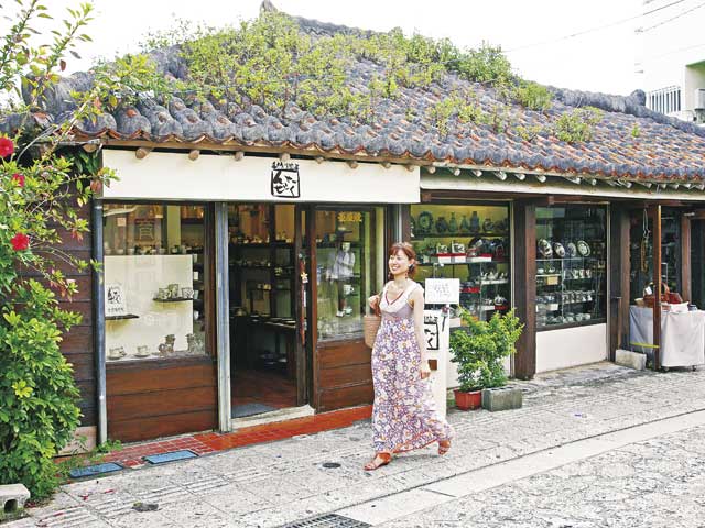 壺屋やちむん通りにあるギャラリー。やちむんは古典的な作品から若手作品まで豊富にそろう。オリジナルの紅型や木工作品も並び、雑貨好きのオーナーのセンスが光る。