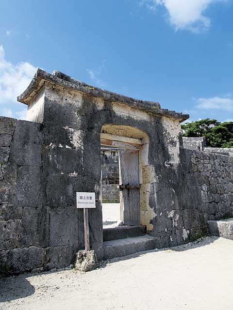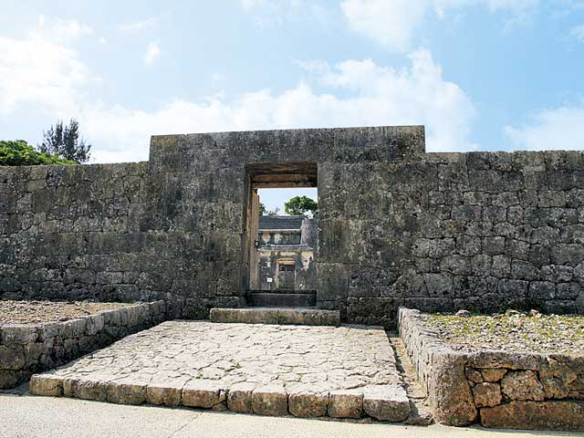 守礼門の近くにある祈願所。石門の後ろの森が御嶽とされている。建造物は石門のみで、第二尚氏王統第3代王の尚真(しょうしん)の創建。平成12(2000)年に世界文化遺産に登録。