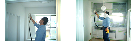 お部屋の隅々まで薬剤をふきつけ、害虫を徹底的に撃退します(ULV方式)。 また、殺虫成分の高い食毒剤(ベイト剤)も併用することにより、害虫を撃退し清潔な状態を維持させます。