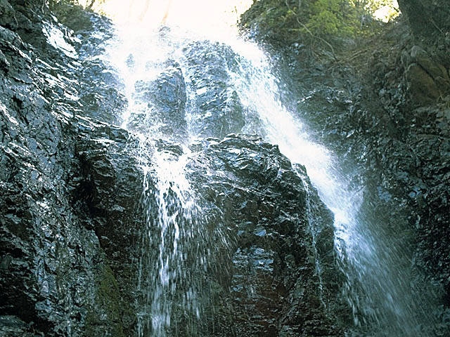 別名を不動の滝といい、倉真温泉街を抜けた中貝戸橋の案内板から歩いて30分くらいのところにある。岩肌を伝って落ちる滝は、倉真川の源流となって掛川市街まで流れている。