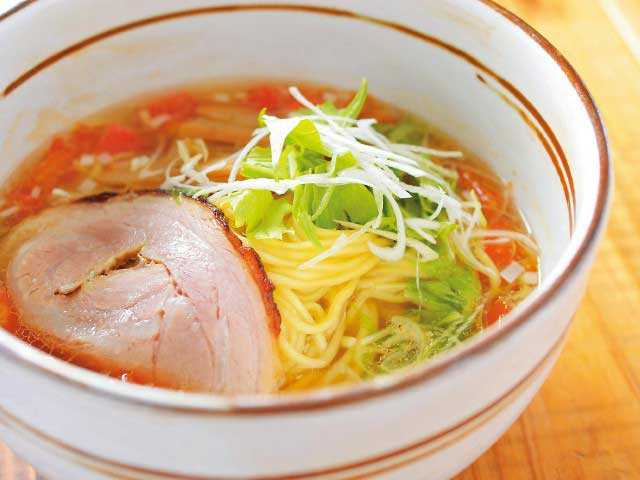 トマト果肉をそのまま使った「トマトらあめん」はトマトの酸味とスープのバランスが抜群。煮干しだけで旨みを抽出した「120%煮干らあめん」も評判。