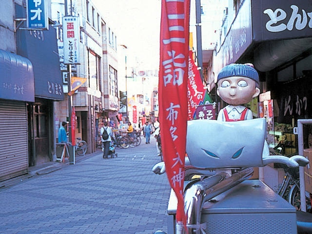 調布駅の北側、布多天神社へ向かう天神通り商店街は、『ゲゲゲの鬼太郎』の著者である漫画家水木しげるの事務所が近くにあり、通りに鬼太郎やネズミ男などの像が置かれている。