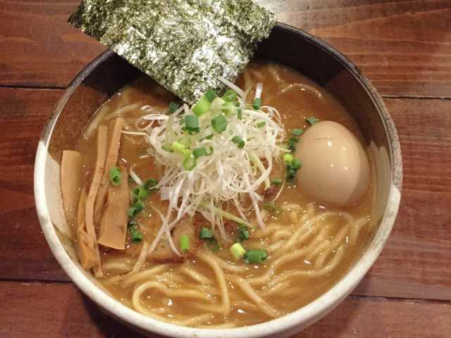 豚骨や魚介でだしをとった濃厚スープに、つるっとのどごしもいいもちもちの麺がからんで美味。味がしっかりしみ込んだ卵も絶品。