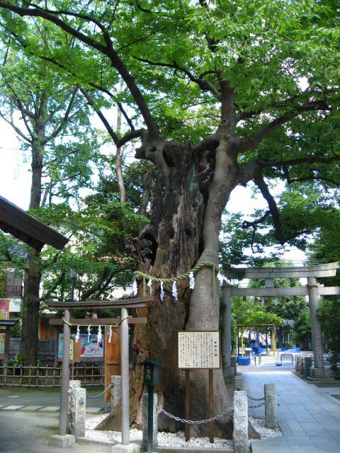けやきの御神木に触れると若返る、という言い伝えが残る