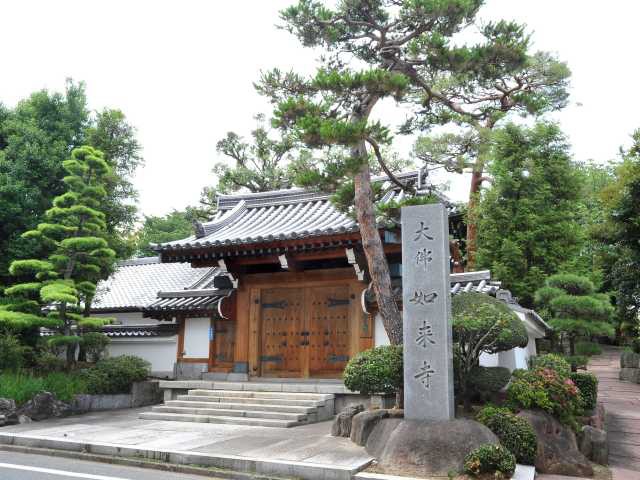 養玉院と如来寺、2つの寺院が合併してできた養玉院如来寺。長い坂道を登ると階段脇に布袋様の姿が。さらに進むと大井の大佛(おおいのおおぼとけ)といわれた5体の大仏様が鎮座する。
